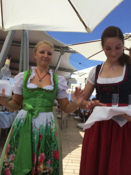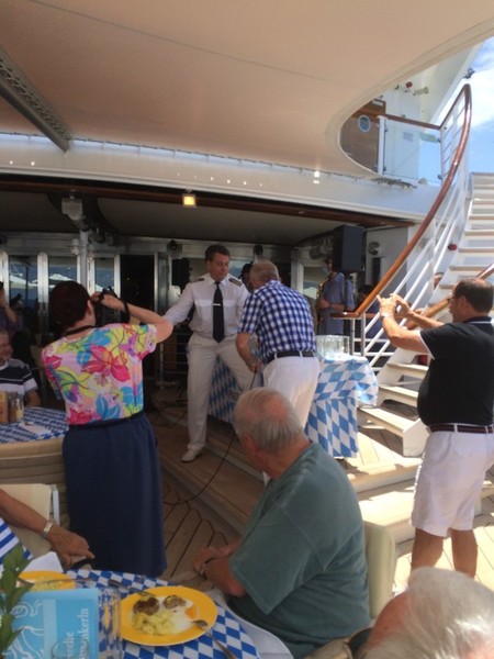 3. Februar 2014: Heute ist Seetag von Hapatoni in Richtung Rangiroa (Franz. Polynesien). Es gibt nicht viel zu erleben. Mittags gab es auf dem Lido Deck einen Bayerischen Frühschoppen. Der Kapitän hat ganz professionell das Bierfaß mit einem Schlag geöffnet.