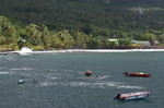 4. Februar 2014: Heute Morgen gegen 7:00 Uhr lief die MS Europa in das Rangiroa Atoll. Es gehört zu 77 weiteren Atollen. Eines davon ist das Muroroa Atoll, das ca 2.000 km südlicher liegt. Vor 50 Jahren haben die Franzosen begonnen ca 200 Atombomben zu zünden. Im Rangirora Atoll ist davon nichts zu spüren, die Korallen scheinen alle noch intakt zu sein. Wir haben mittags in einem Glasboot die Fischvielfach zwischen den Korallenbänken bewundern können. Um 18:00 Uhr ging das Schiff von der Reede und fuhr aus dem Atoll mit Delphinbegleitung (leider kein Foto).
